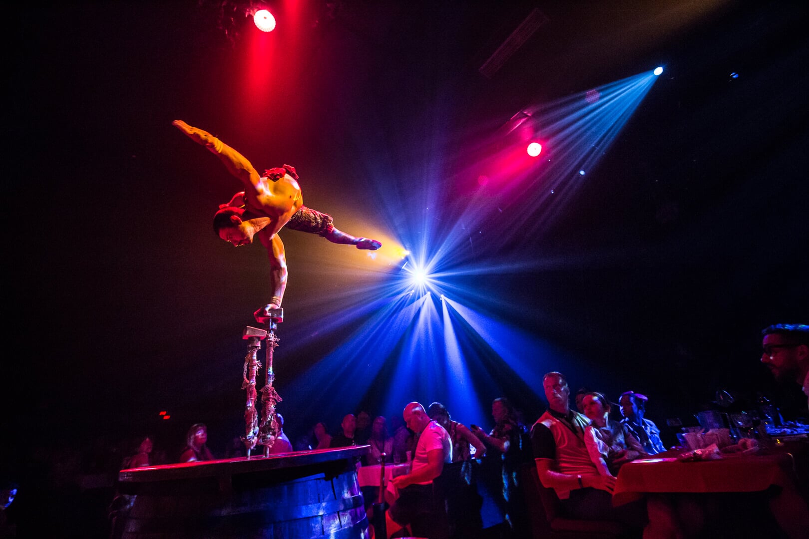- Ankunft: Bei Ihrer Ankunft werden Sie zu Ihren zugewiesenen Plätzen und Tischen geführt. Die Theatertüren öffnen um 18:00 Uhr, und quirlige Piratenkapitäne und Schurken mischen sich unter das Publikum und sorgen für Spannung.